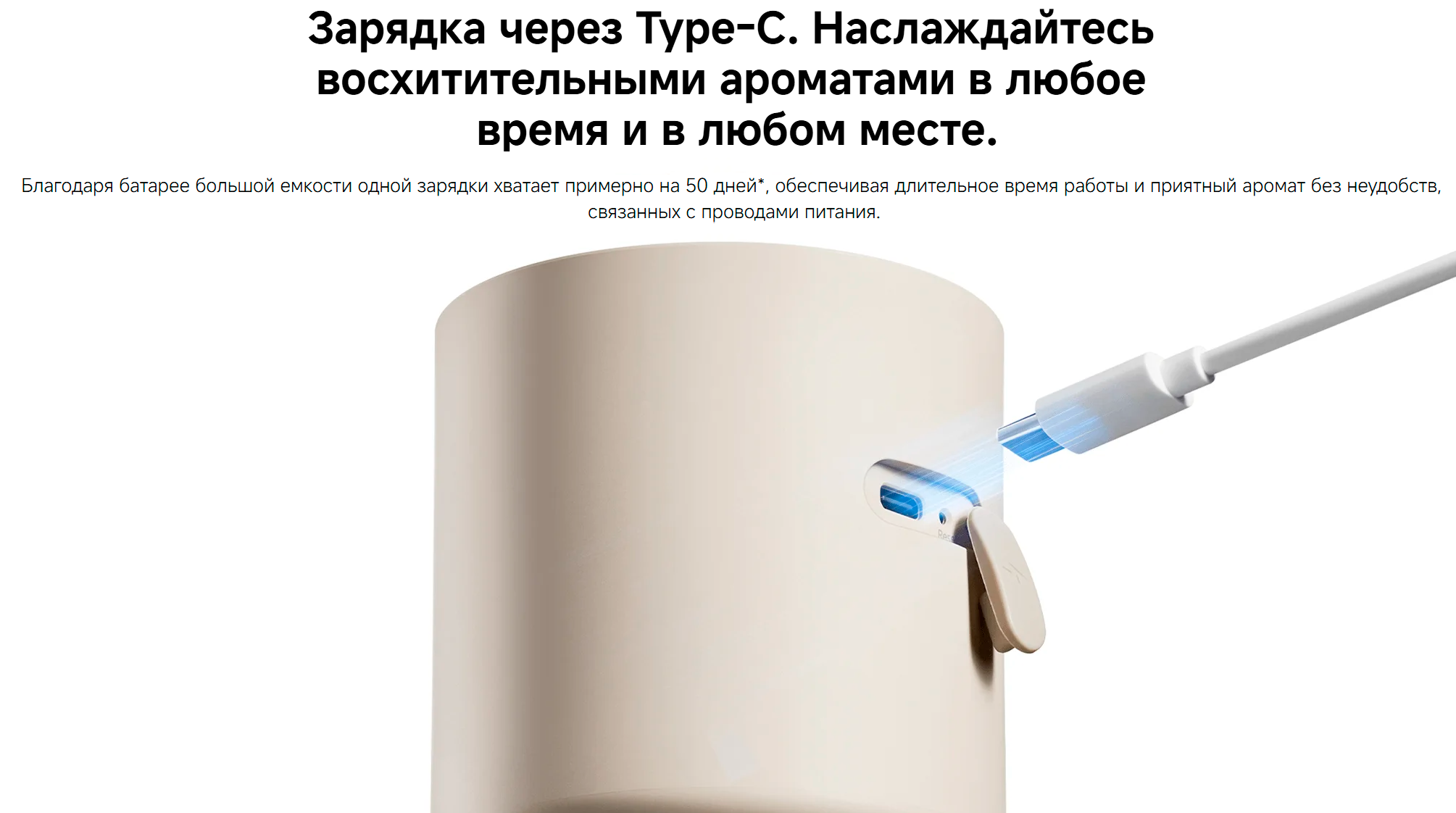 | Комплектация | зарядный кабель, документация, аромадиффузор |
